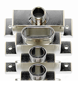 Electro Adapter Manufacturers Connector Backshells in a banding backshell, spring termination backshell and molding adapters. Cable termination backshells can include cable strain relief clamps if required. Backshell Adapters are available in many shapes and sizes to aid in cable termination. Cable shield sock terminations along with shield splice bushings make cable terminations quick and reliable. Shrink Boot backshells are selected for environmental benefits. Electro Adapter products include designs for “non-shielded” environmental circular backshells (A** Series) and for “shielded”, environmental and non-environmental circular backshells (E** Series). These standard designs originated from the military AS85049 specification and meet the same stringent requirements as the military specifications. Two-piece designs are used if the cable entry exceeds the shell size. For cases where a two-piece design is not specified, consult factory for design details. The A** Series adapters include designs for a shrink boot backshell and a low-profile, cable strain relief clamp backshell. |