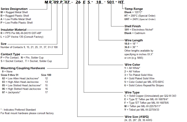 Select the type of rectangular connector you require. Note the “P” series of MIL-DTL-83513 is not designed to mate with the MIL-DTL-83513 “M” series. The “M” series mates with its dimensional plastic version “B”. The “A” series mates with its dimensional plastic version “P”.